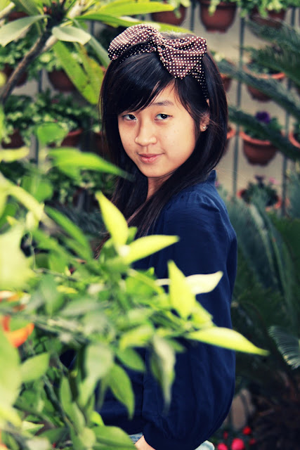 Today was actually quite warm, so I didn't dress too warmly. I finally wore my big ribbon headband, and paired it with my brown fuzzy boots (birthday gift from my best friend, Chi) which I LOVE. They're warm and comfortable and snug and everything you'd ever want for fuzzy boots.